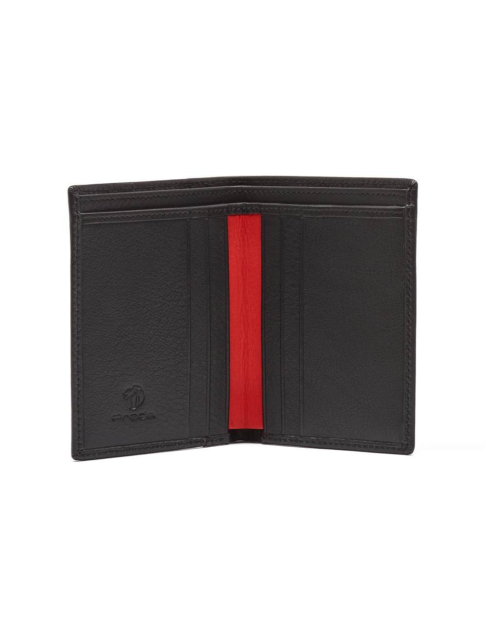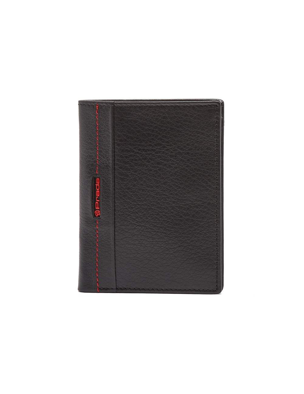 Cartera vertical median delgada en acabado piel graneada. Detalle de pespunte en contraste y logo "león Prada" en goma y bajo relieve.