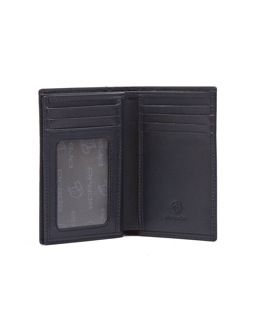 Cartera vertical mediana abultada en napa. Detalle de pespuntes en contraste perimetrales y grabado "Prada" a fuego en frontal. Interiores en napa, cuenta con tarjeteros y talco, grabado "león Prada" a fuego.