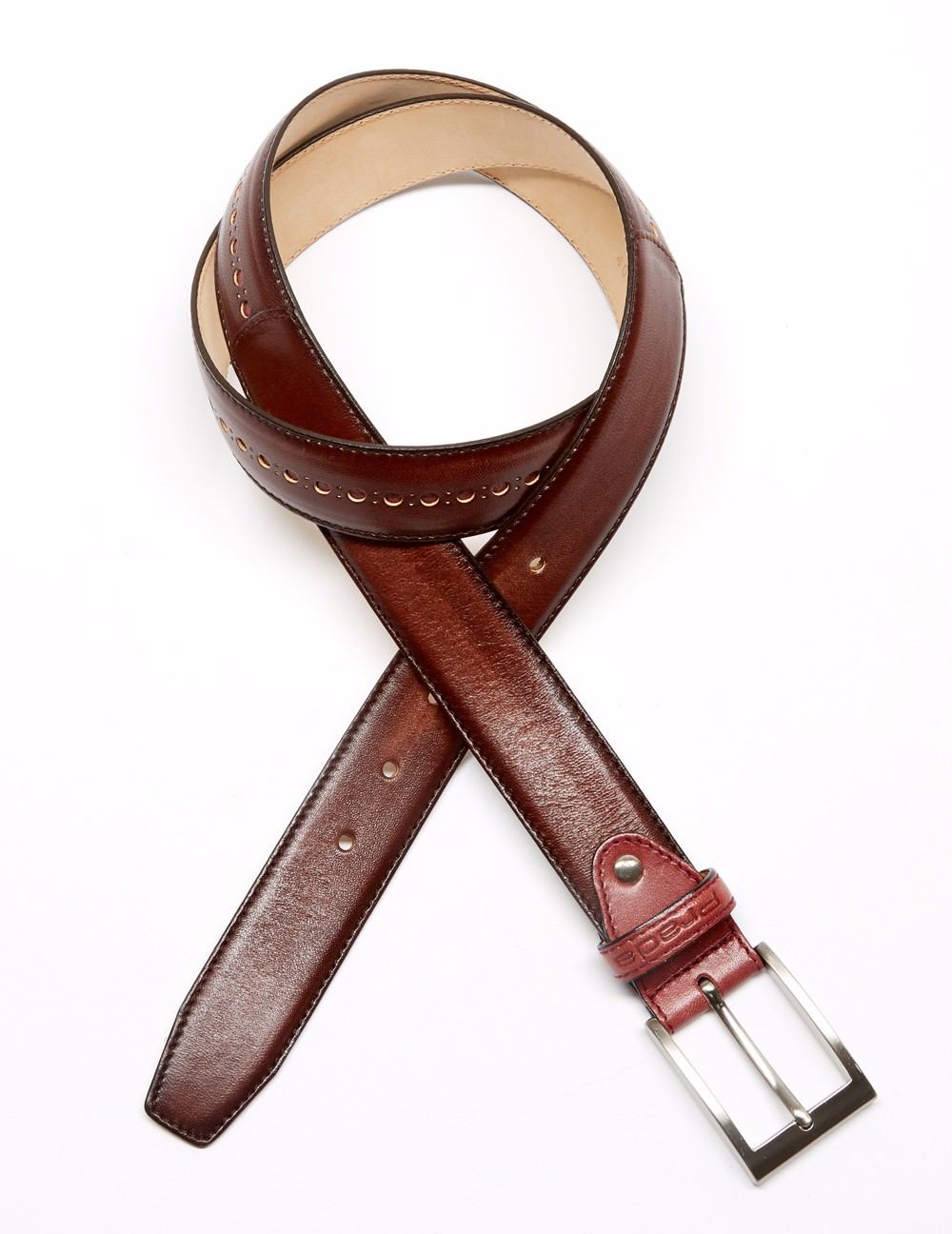 Cinturón en acabado napa. Detalle al centro de picado, pasantín en grabado Prada. Hebilla en acabado plateado.