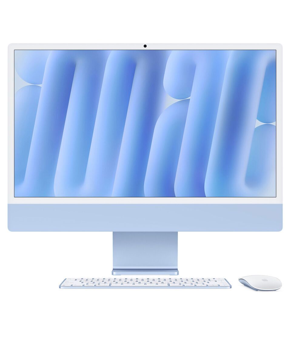 Increíblemente delgada Pantalla Retina 4.5K de 24 pulgadas Excelentes bocinas_ micrófonos y cámara en una Mac Y con los superpoderes del chip M1.