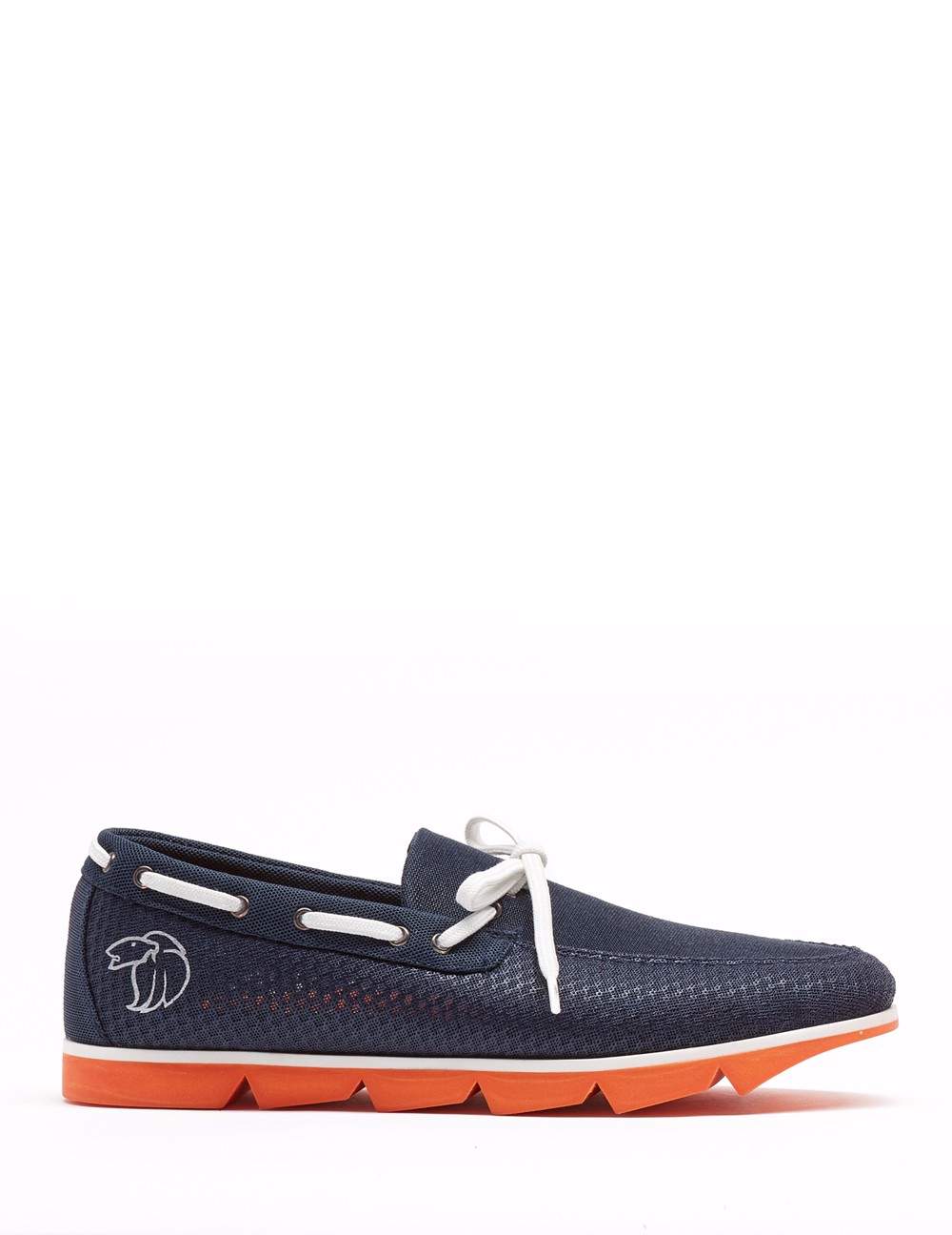 Slip-on en acabado textil. Detalle de cordones decorativos en bies y cañas laterales en acabado panalillo antitranspirante con león Prada decorativo. Suela track en contraste.