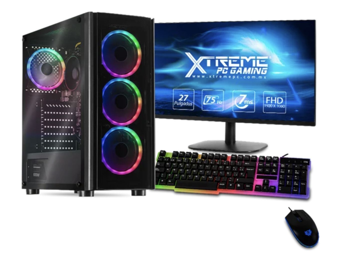Esta PC es ideal para una variedad de tareas_ incluyendo juegos_ home office_ trabajos escolares_ ofimatica y más. Monitor | 27” FULL HD 75Hz | 7ms. Kit Teclado / Mouse | Interfaz USB. Windows 10 Versión para evaluación de componentes